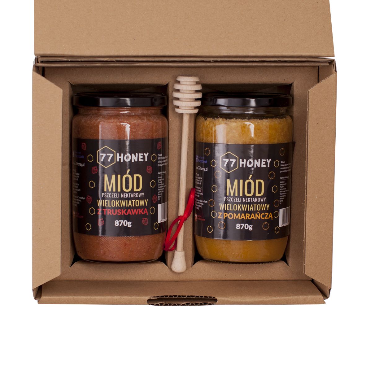 Idealny zestaw na prezent – słoiki zapakowane w ekologiczny kartonik , w każdym zestawie nabierak do miodu gratis!